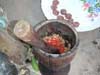 上段一番左の写真はガンビアのほとんどの家庭にある調理器具で、棒でつついて材料を粗みじんにするものです。