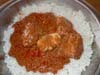 などをパームオイルと一緒に煮込んだもの。下段左は「ヤサ」で、鶏肉と玉ねぎをコンソメとマスタードで煮込んだもの。いずれもガンビアではポピュラーな料理です。ガンビアの朝食は軽めで、ポリジというおかゆのようなものか下段右から2番目のフランスパンかどちらかです。全体的に見るとヘルシーな感じでしょうか。おかずをご飯に乗せて食べるスタイルはとても親近感がわきますね。